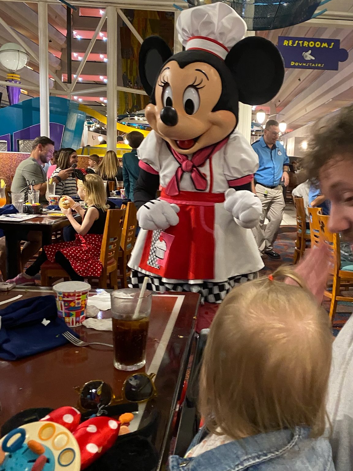 At Chef Mickey’s restaurant, kids under 3 eat free. One night we all went to Chef Mickey’s to dine with Mickey, Minnie, Donald, Goofy, and Pluto while eating an unlimited buffet. We were grateful to only have to pay for the adult meals, but I am pretty sure the 1-year-old could have eaten more than anyone else and the 2 year old was able to throw out more food than she ate.